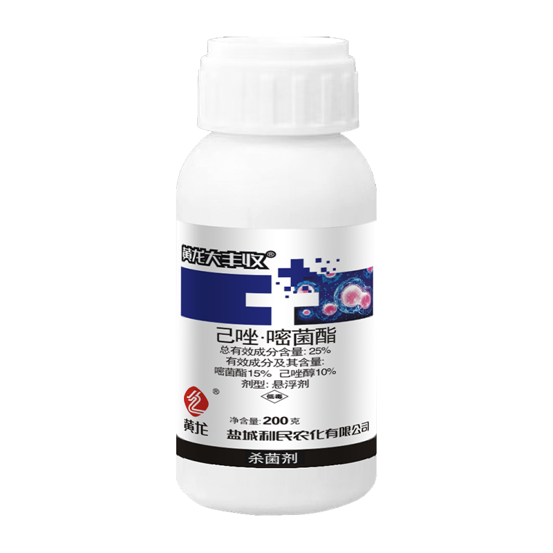 This product is a combination of the triazole fungicide hexaconazole and the strobilurin fungicide azoxystrobin, with active ingredient contents of 10% and 15%, respectively. Its mechanism of action is as a mitochondrial respiration inhibitor. This blockage prevents mitochondrial respiration and ATP production, disrupting and preventing the biosynthesis of ergosterol, a key component of the pathogen's cell membrane. This leads to a failure of the cell membrane and the death of the pathogen. It exhibits systemic, protective, therapeutic, eradicative, and penetrating activity. It is rapidly absorbed and transported up and down the plant body, demonstrating excellent activity against nearly all fungal diseases. It offers a strong preventive effect, a long-lasting effect, and a high level of efficacy. It is a differentiated product with limited certification.