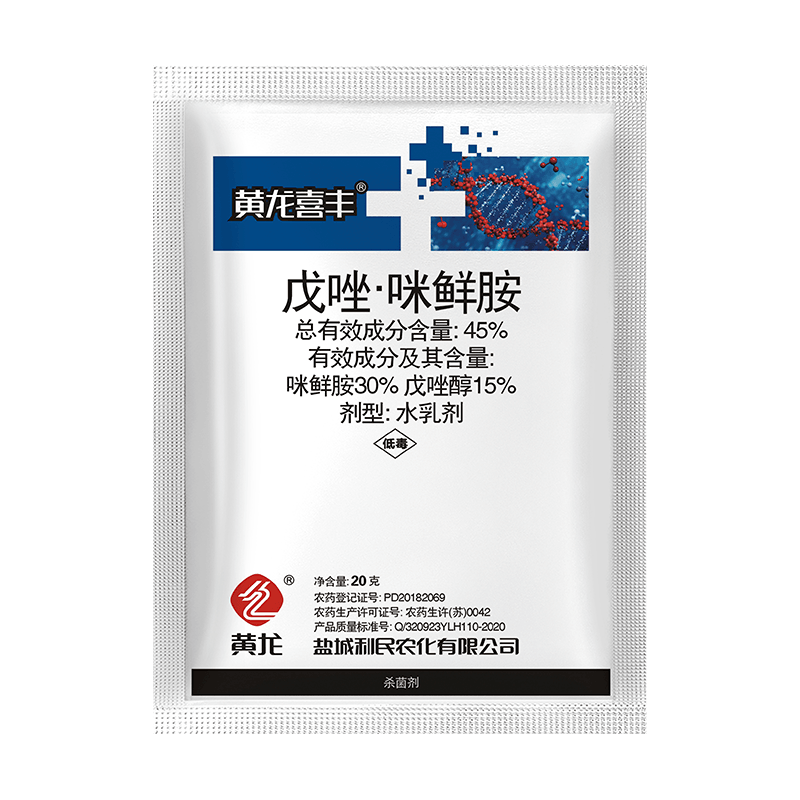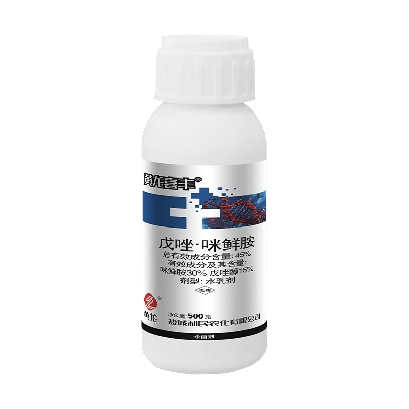 This product is a fungicide formulated from a triazole and imidazole combination. It exhibits its fungicidal activity by inhibiting sterol biosynthesis and the demethylation of ergosterol on the pathogen's cell membrane. The active ingredient content is 15% + 30%,respectively. It has excellent inhibitory and antifungal effects against imperfect fungi and basidiomycetes. It boasts a broad spectrum of activity, strong systemic conductivity,and resistance to rainwater erosion. It also possesses contact, protective, and therapeutic properties.