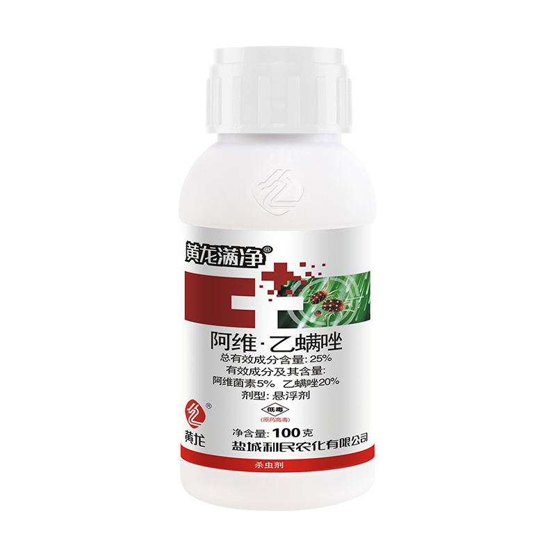 Product Features: This acaricide is a combination of the biogenic pesticide avermectin and the chemical pesticide etoxazole. It works by disrupting the neurophysiological activity of pest mites and inhibiting their molting process. The active ingredients are 5% avermectin and 20% etoxazole, respectively. It has strong contact and stomach toxicity, good penetration, and is ovipositor and insecticide, particularly effective against mite eggs and nymphs. It also significantly inhibits the hatching rate of eggs laid by adult female mites. It is highly effective against citrus and peach spider mites, with a long-lasting effect.